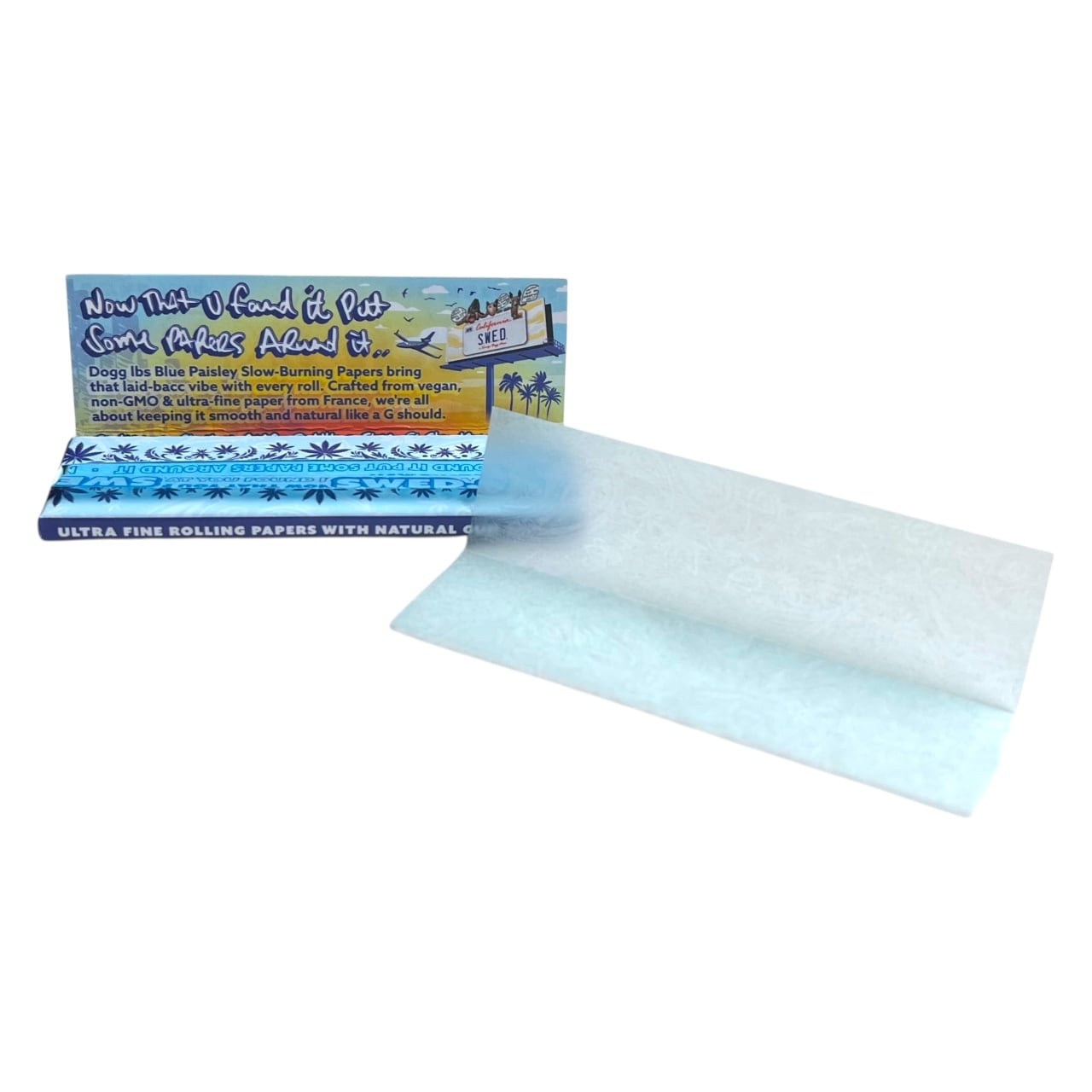 フランス産の極薄ペーパーを使用し、ゆっくり・均一に燃えるスローバーン設計。ビーガン、非遺伝子組み換え仕様で、クリーンで雑味のない煙をお楽しみいただけます。さらに、光にかざすと浮かび上がる透かしペイズリー柄の美しさが魅力。Snoop Doggのスタイルで、いつもの一服がグッとアガる。